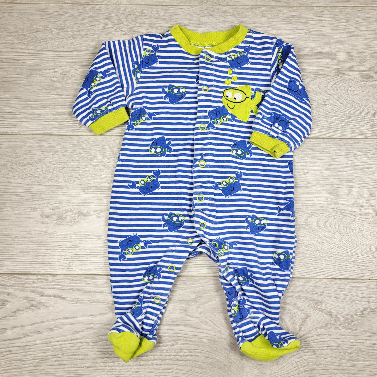 CHSP22 - Pekkle blue striped cotton sleeper with crabs. Size 3 months