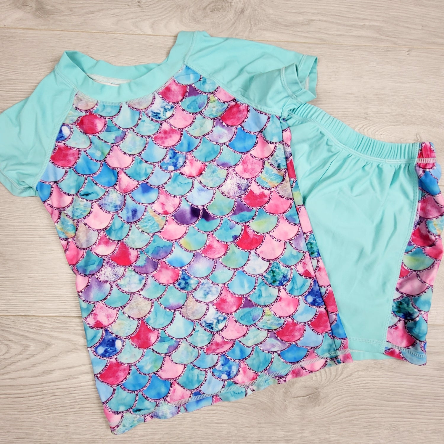 DLJ2 - Blue mermaid scale 2pc swimset. Size 8/9