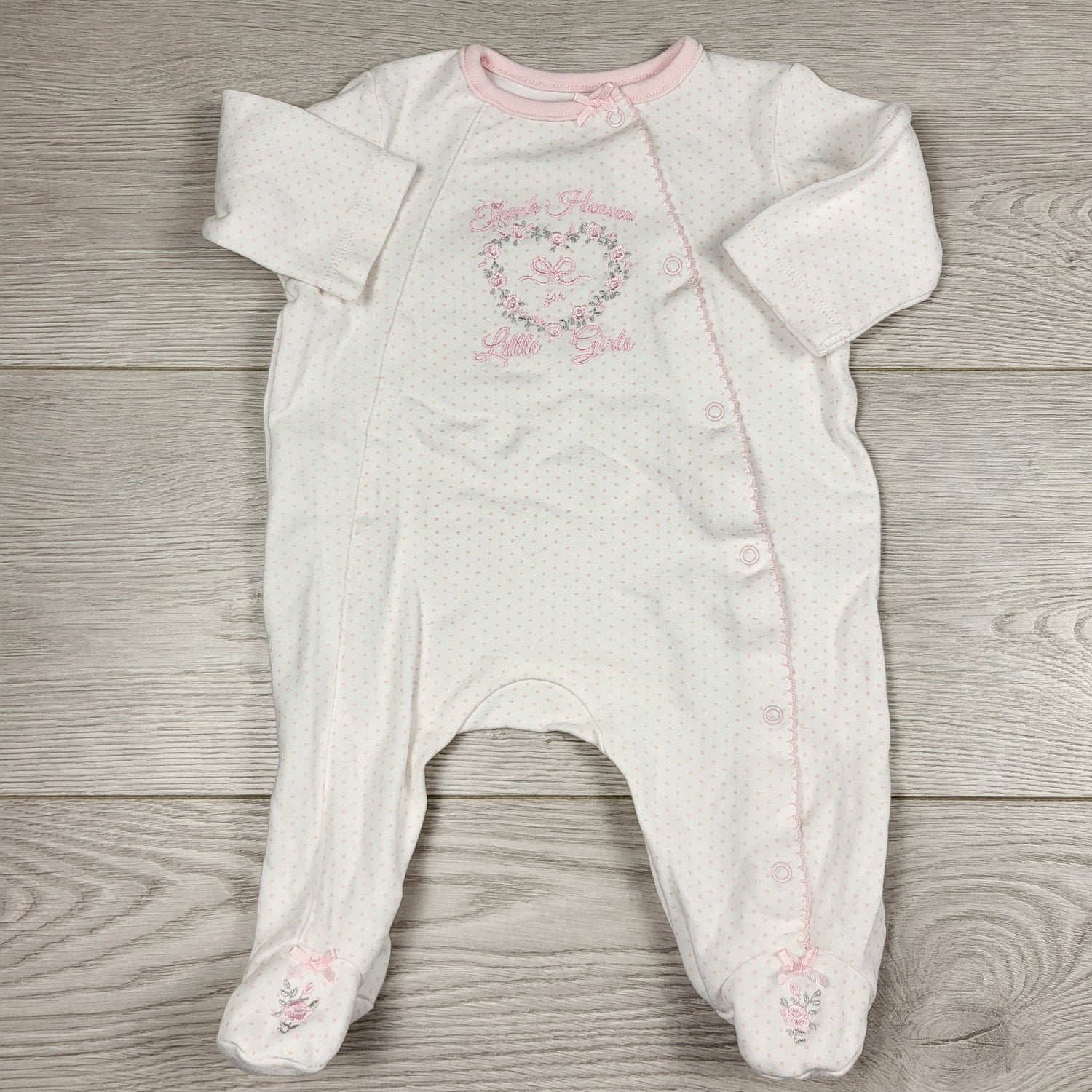 ECRS2 - Little Me white and pink polka dot cotton sleeper. Size 3 months