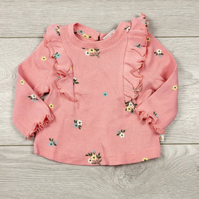 Gap pink ribbed floral print ruffle top. Size 0-3 months
