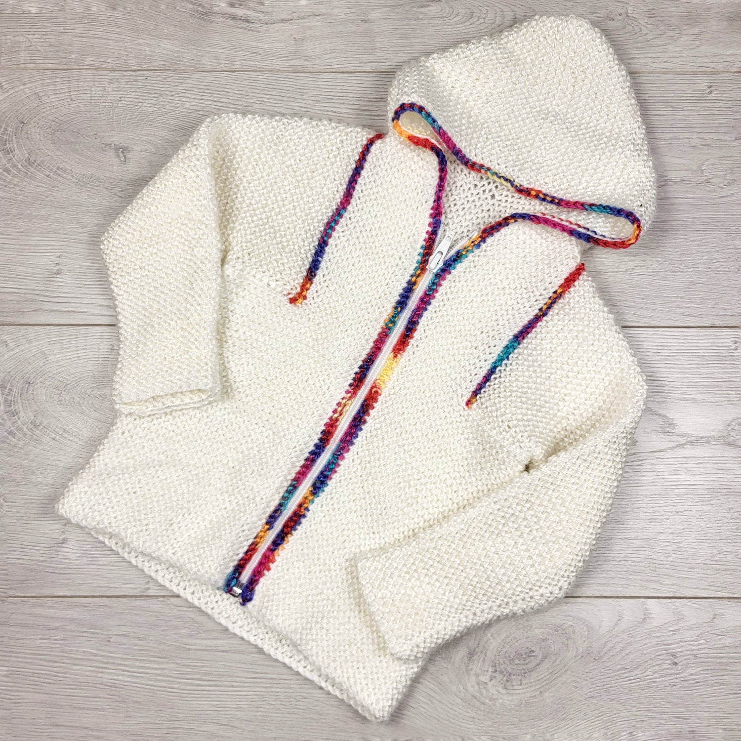 Handmade white zippered hooded sweater. Sizes like 2/3T