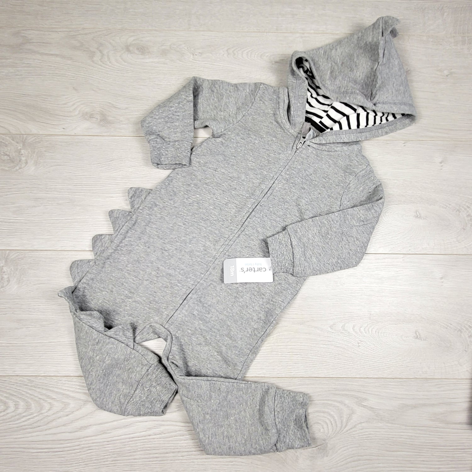 KAMG3 - NEW - Carters grey hooded dinosaur scale romper. Size 18 months