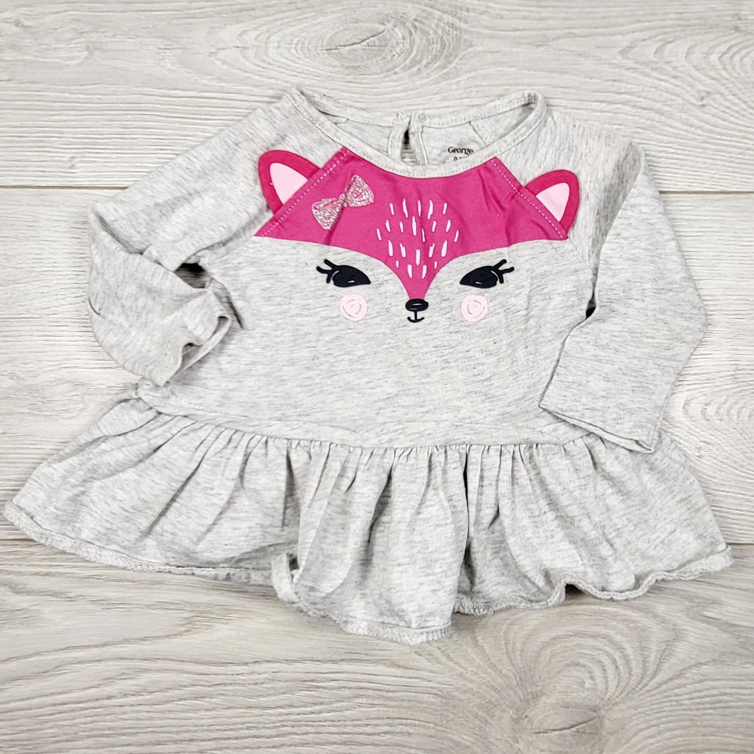 MASO22 - George grey and pink top with fox. Size 0-3 months