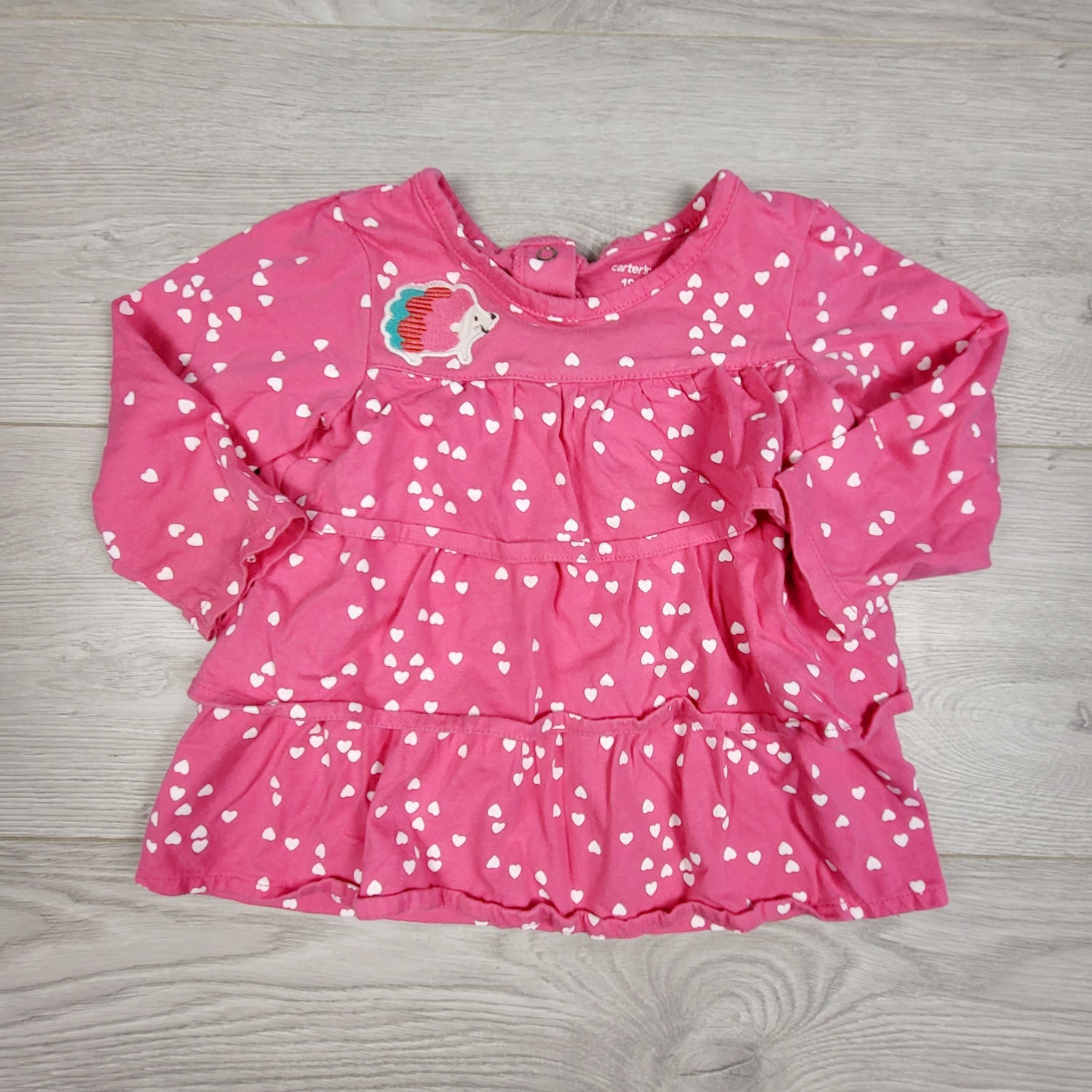 MAWA2 - Carters pink tiered polka dot top with hedgehog. Size 18 months