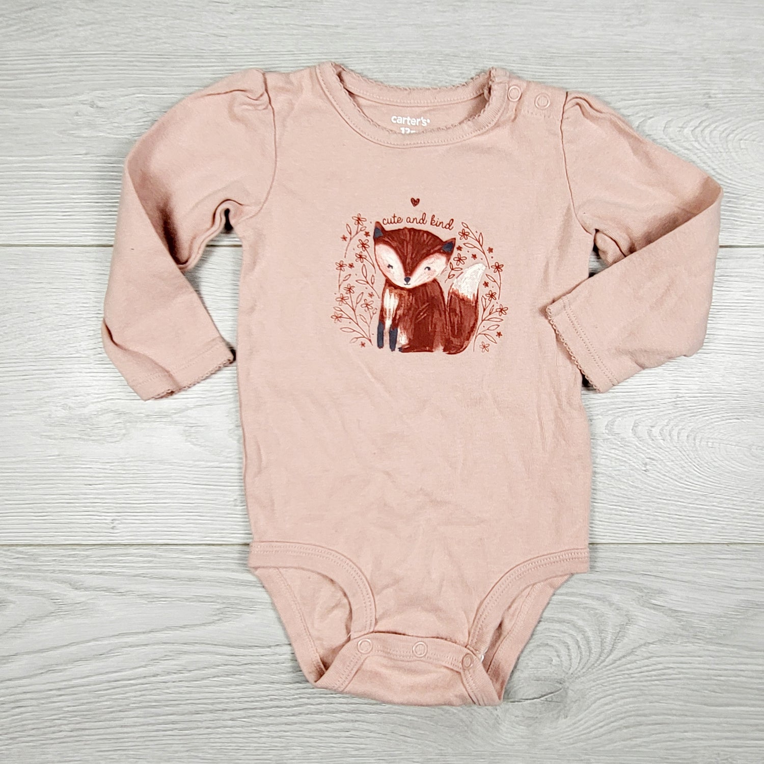 MWLL5 - Carters pink bodysuit with fox. Size 12 months