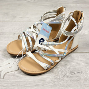 NEW - Cat and Jack white and silver metallic strappy sandals. Size 13