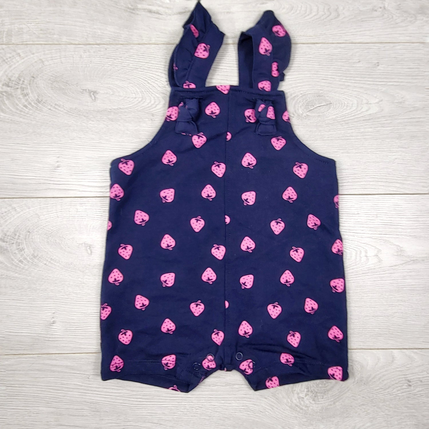 NEW - Joe navy shortalls with strawberries. Size 6-12 months