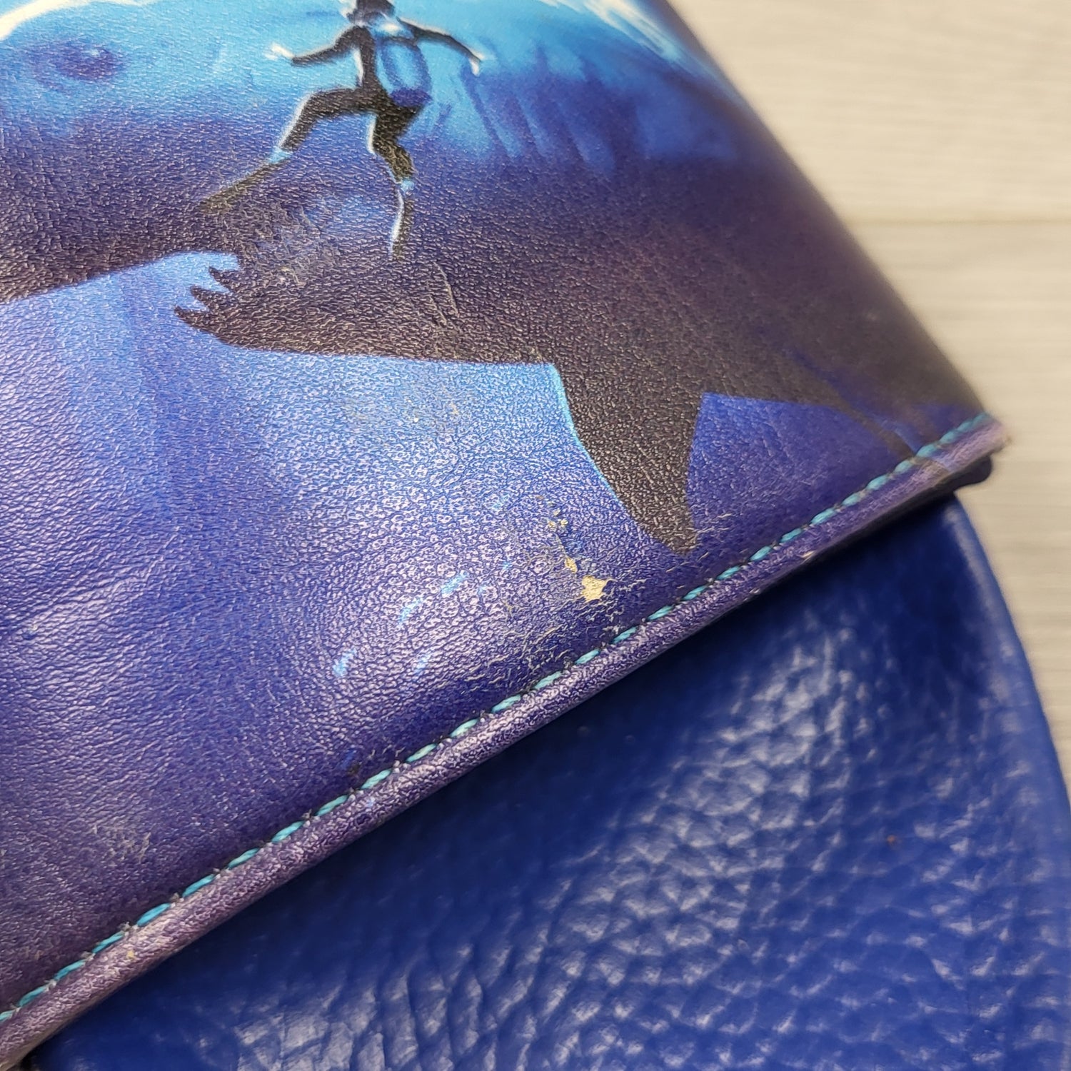Old Navy blue slide sandals with surfer. Youth size 1/2
