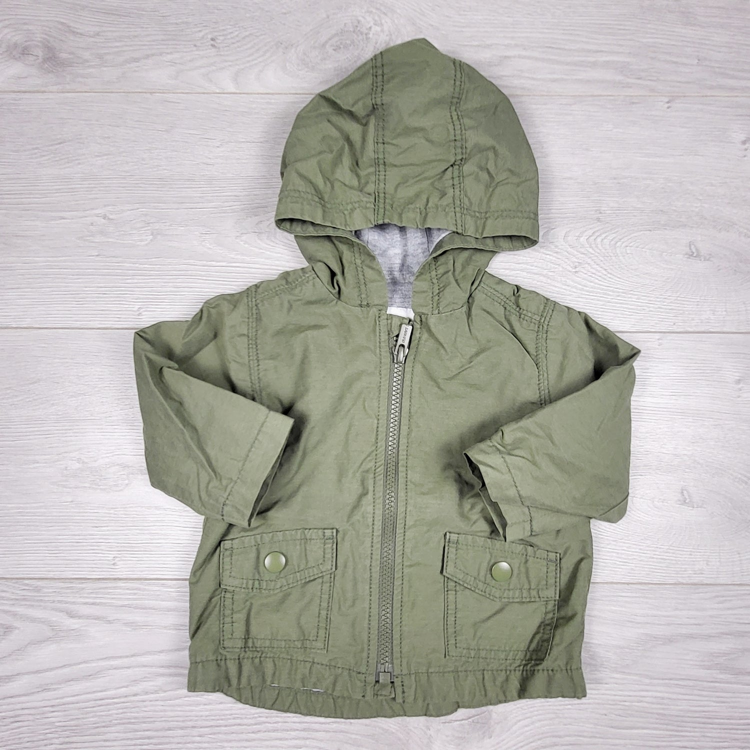 SKOT1 - Old Navy green jersey lined lightweight hooded jacket. Size 6-12 months
