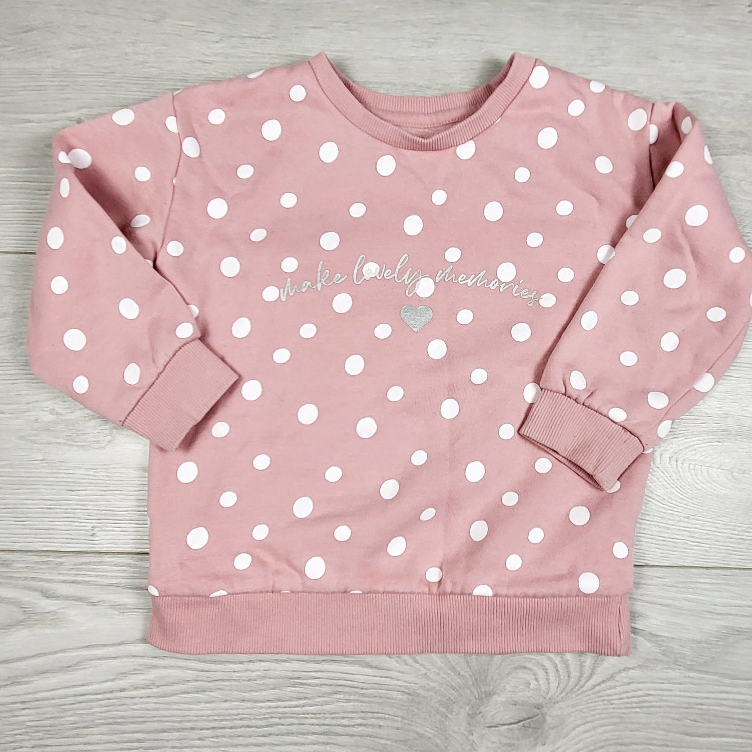 VIBU1 - St. Bernard pink polka dot fleecy lined sweatshirt. Size 3/4T