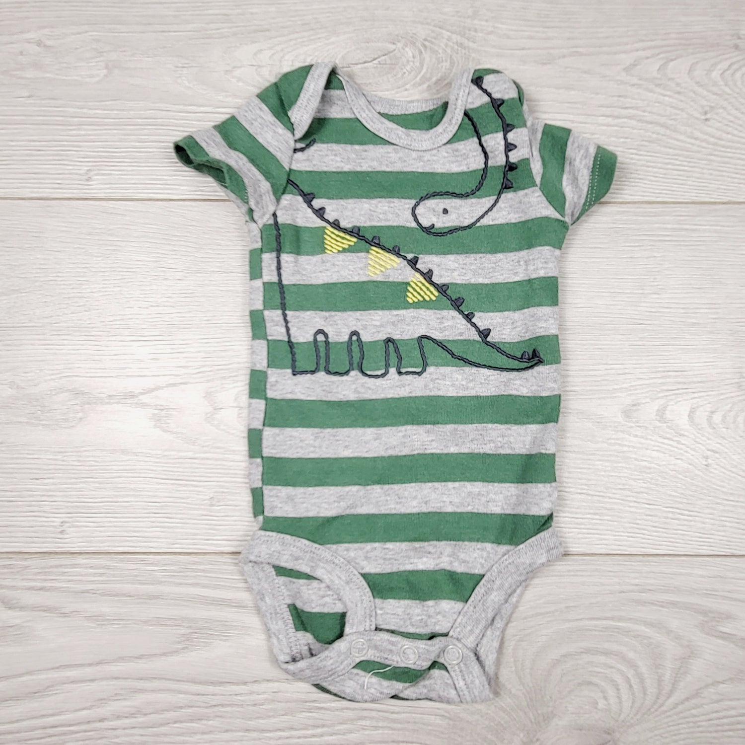 VIBU33 - Child of Mine grey and green striped dinosaur bodysuit. Newborn size