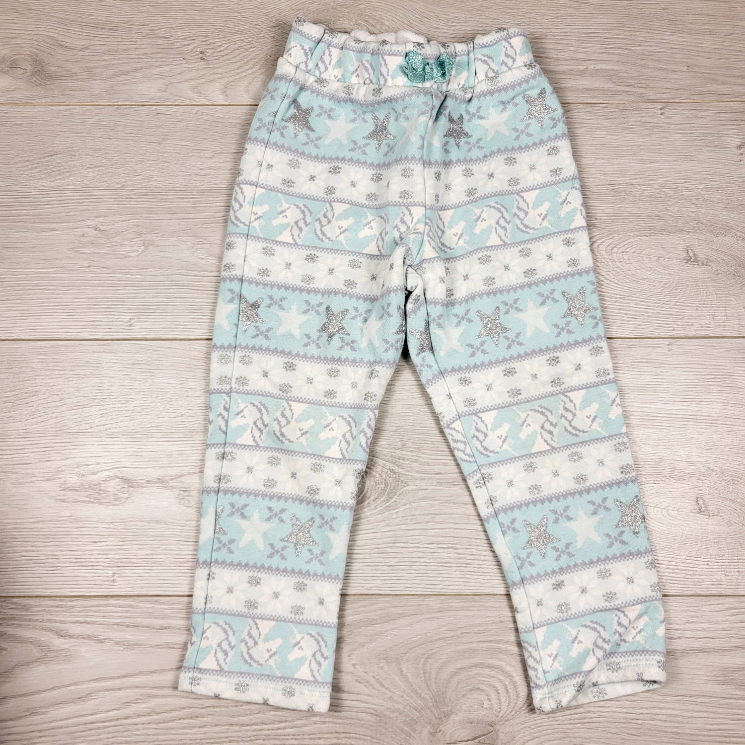 ALWE2 - Children's Place white and blue patterned Winter themed fleecy lined joggers. Size 3T