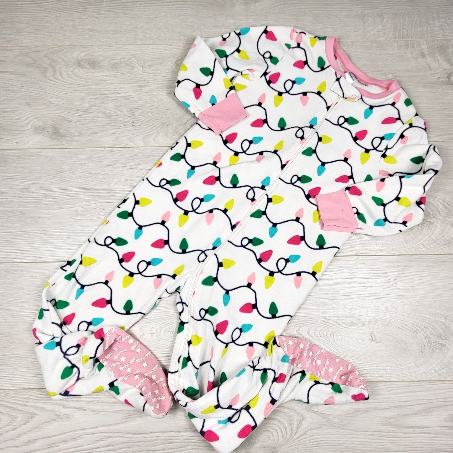 ALWE2 - Old Navy white zippered fleece sleeper with holiday lights. Size 3T