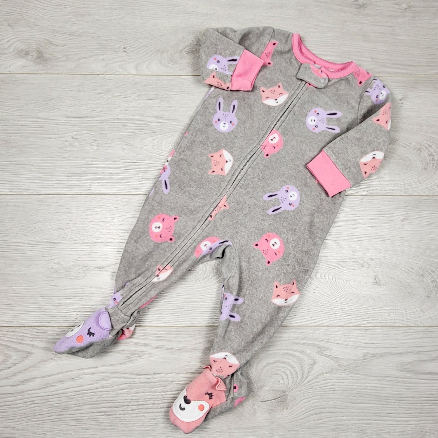 ALWE44 - Carters grey zippered fleece sleeper with woodland animals. Size 6