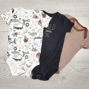 Carters 3pc bodysuit set with wild animals. Size 12 months