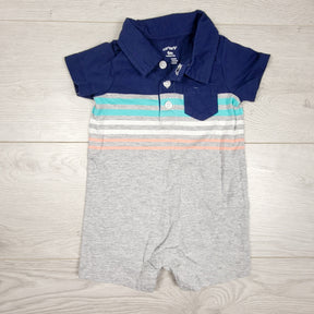 Carters grey and navy romper with stripes. Size 6 months