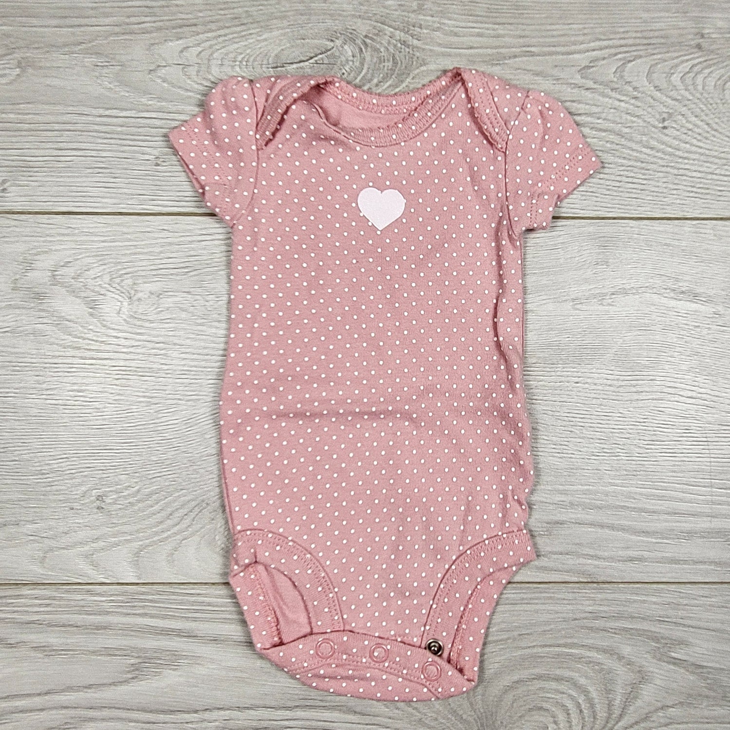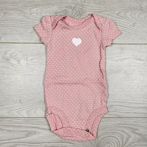 Carters pink polka dot bodysuit with heart. Newborn size