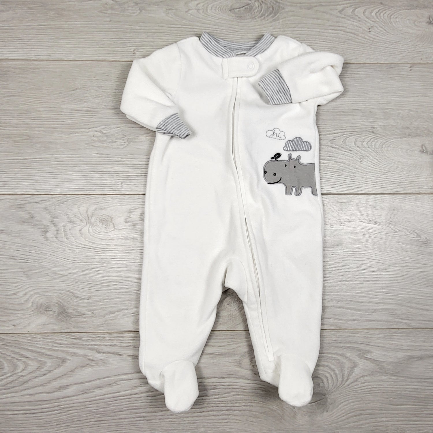 Carters white zippered fleece sleeper with hippo. Size 3 months