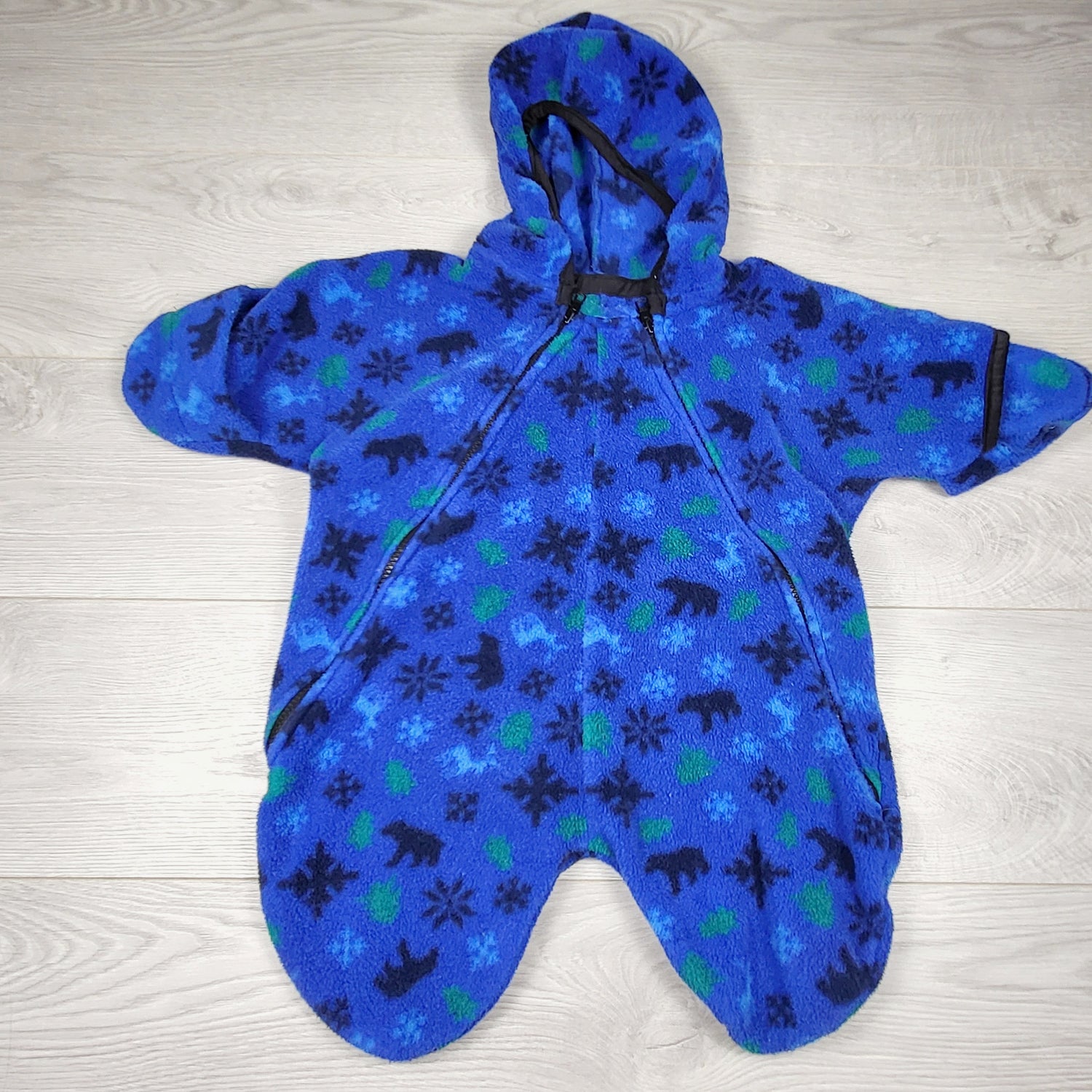 CHSP1 - Blue hooded fleece bunting suit. Approx 6-12 months