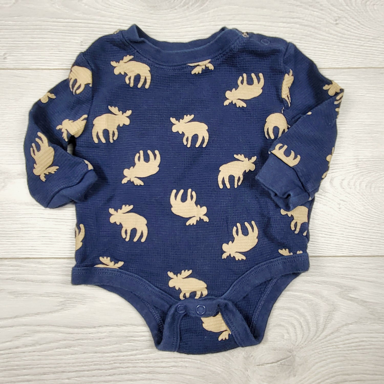 CHSP1 - Joe navy waffle knit bodysuit with moose. Size 3-6 months