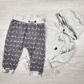 Deux Par Deux grey 2pc set with moose. Size 9 months