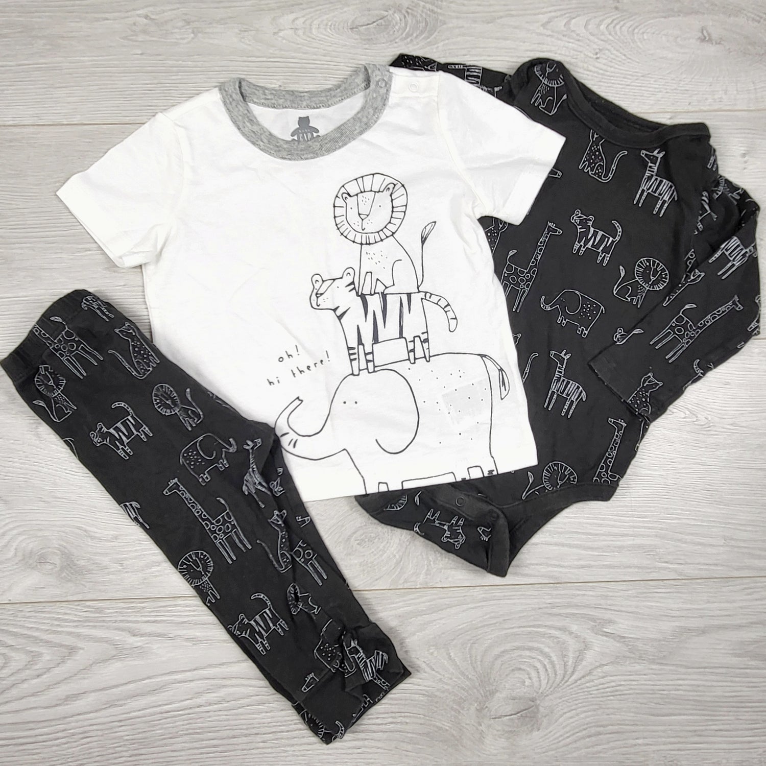 Gap black and white 3pc set with jungle animals. Size 12-18 months