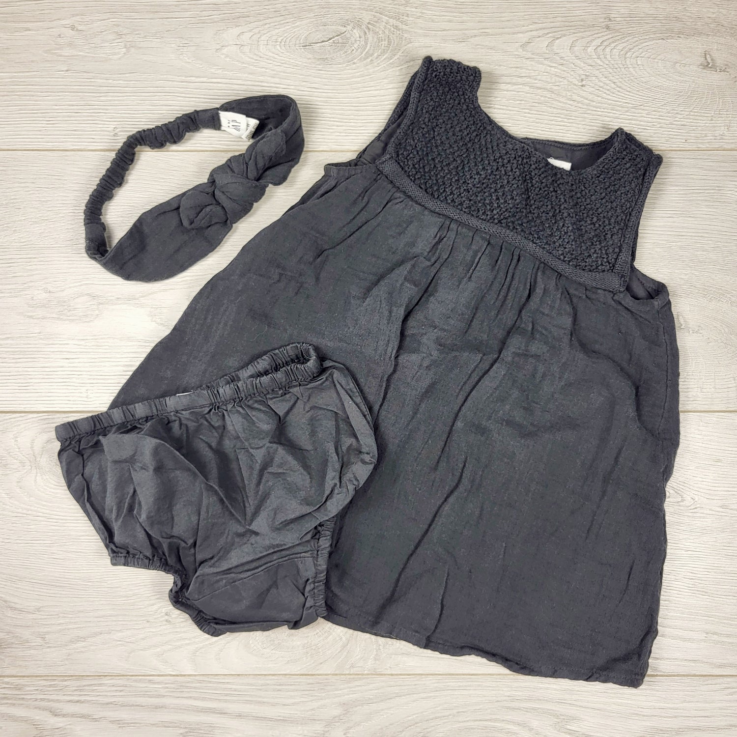 Gap dark grey muslin cotton 3pc dress set. Size 12-18 months