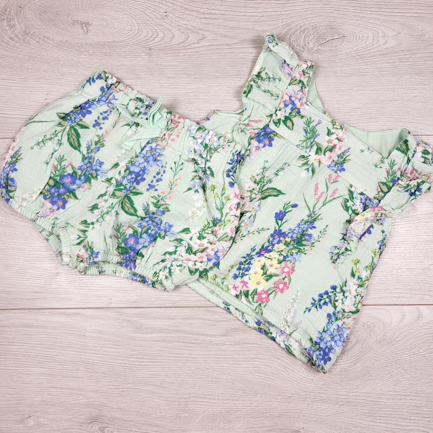 George mint floral print muslin cotton 2pc set. Size 3-6 months