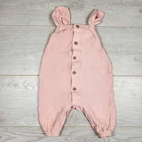 George pink muslin cotton romper. Size 0-3 months