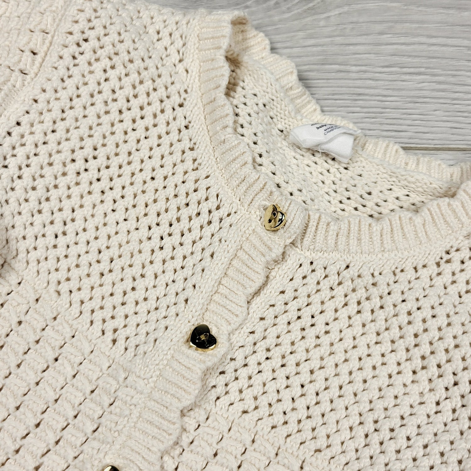 H and M cream coloured knit sweater with heart buttons. Size 6-12 months