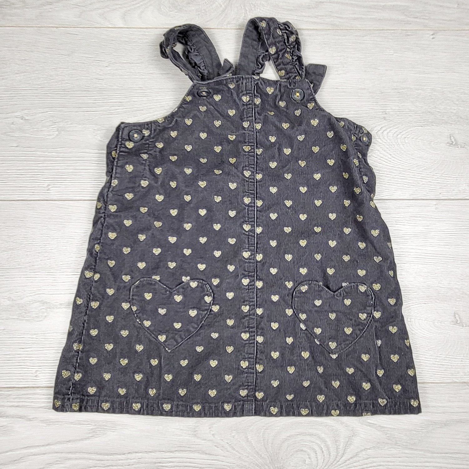 HKTT1 - Carters grey corduroy dress with gold sparkle hearts. Size 18 months