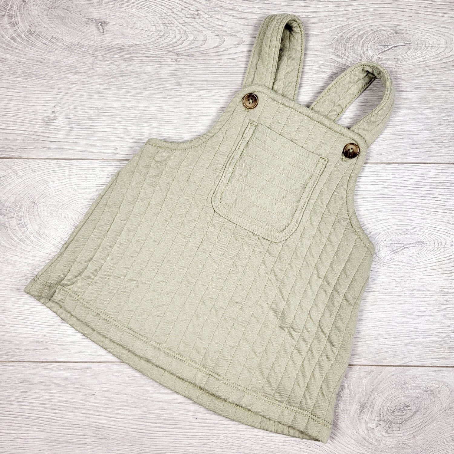 Joe sage green quilted cotton bib dress. Size 3-6 months