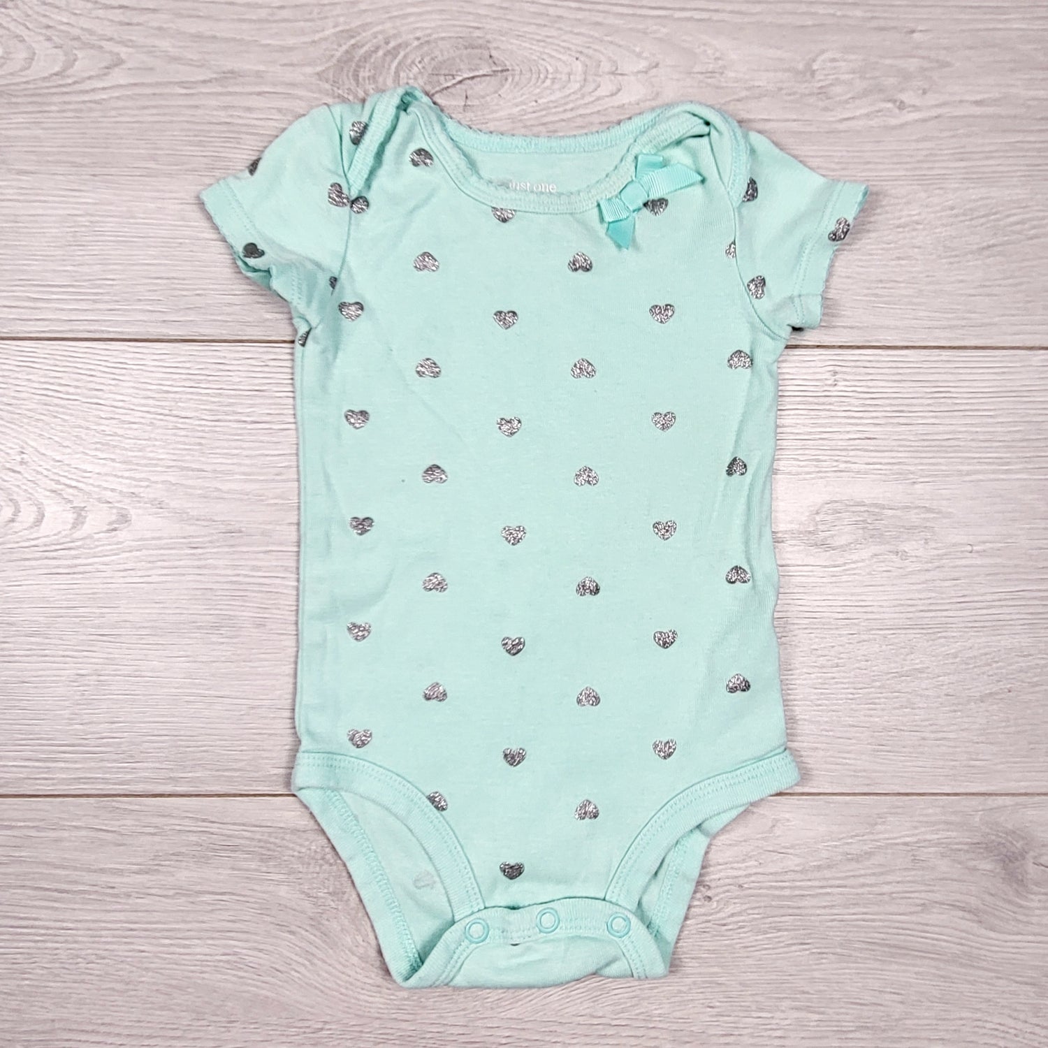 Just One You turquoise bodysuit with glitter hearts. Size 6 months