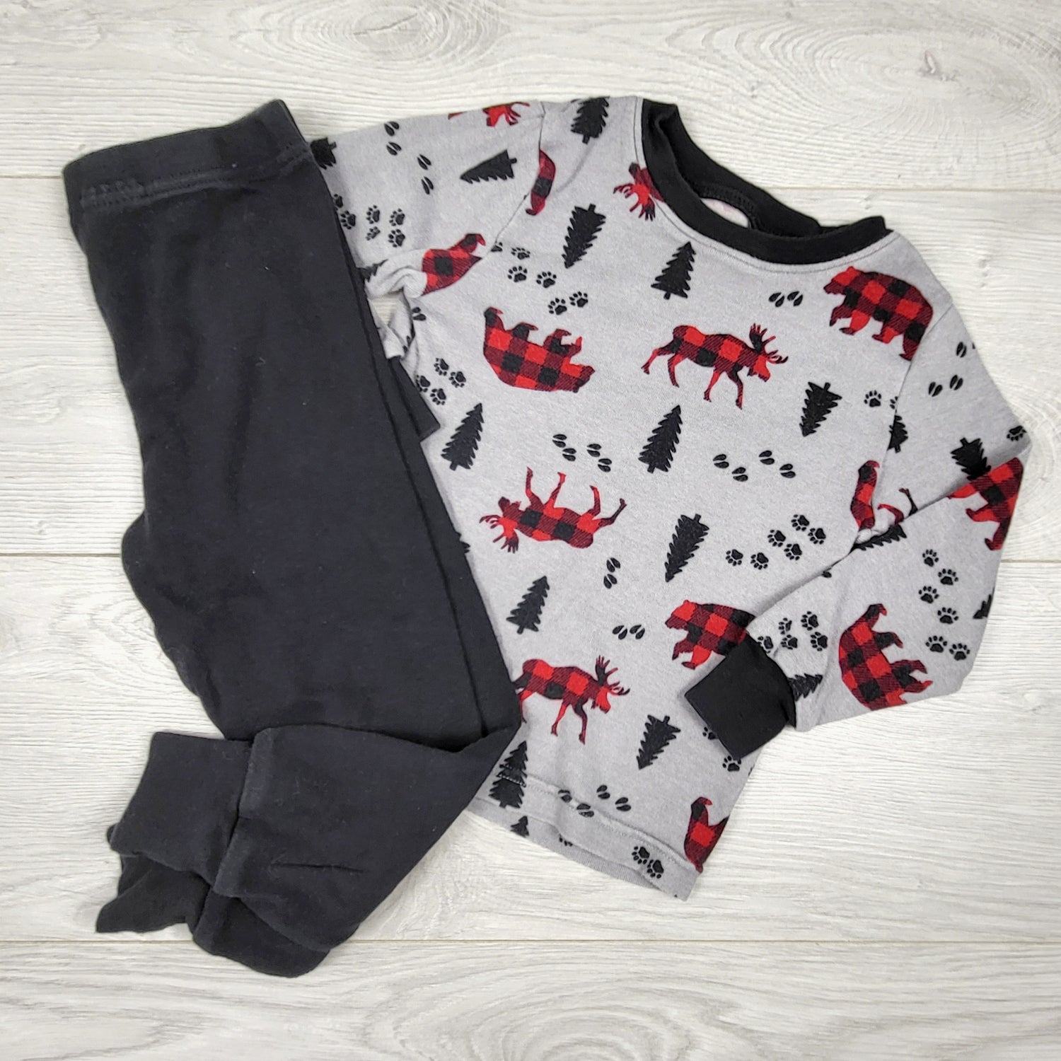 Kirkland black and grey 2pc PJs with moose. Size 3T