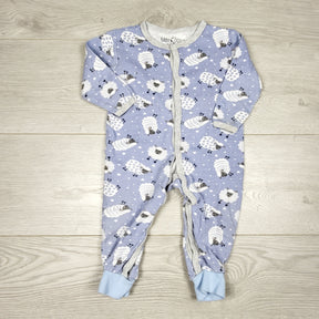 KRML1 - Baby Ooga blue cotton sleeper with sheep. Size 6-9 months