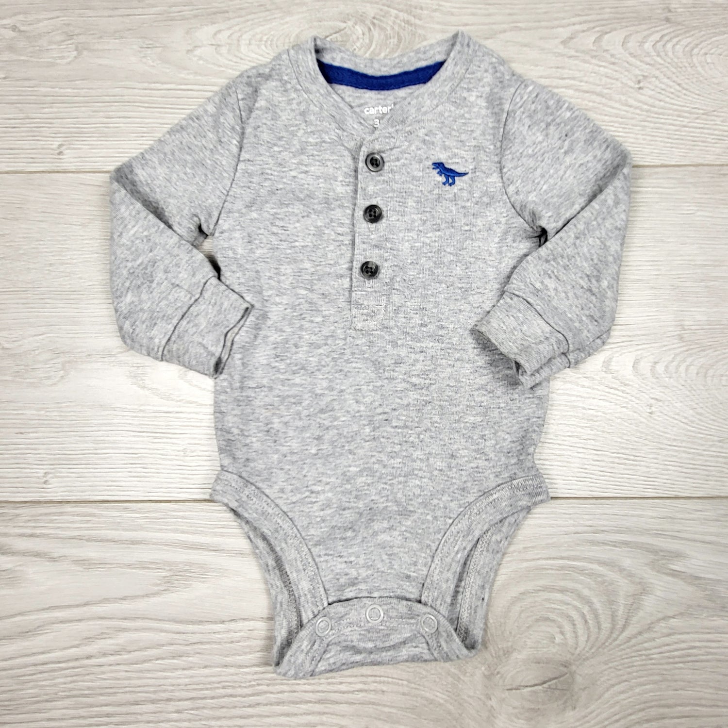 KRML1 - Carters grey long sleeved bodysuit with buttons. Size 3 months