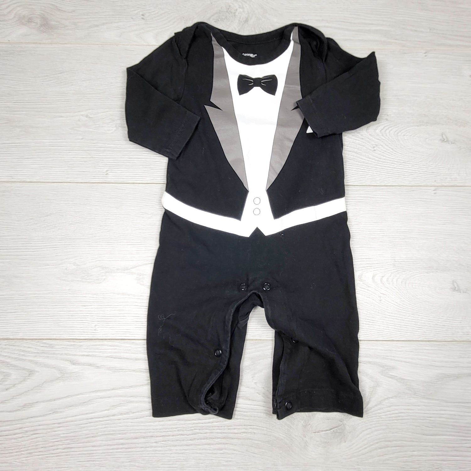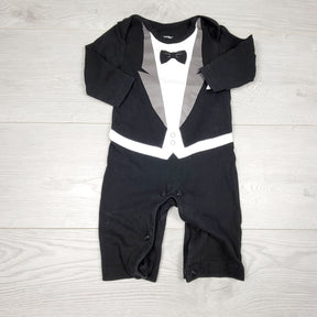 KRML1 - George black tuxedo romper. Size 3-6 months