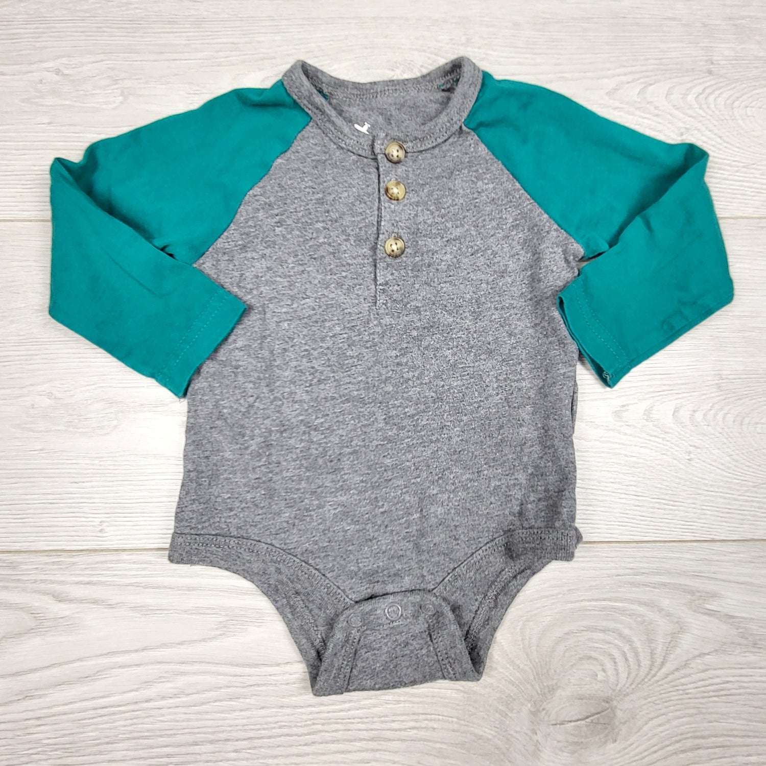 KRML1 - Joe grey and teal raglan bodysuit. Size 6-12 months