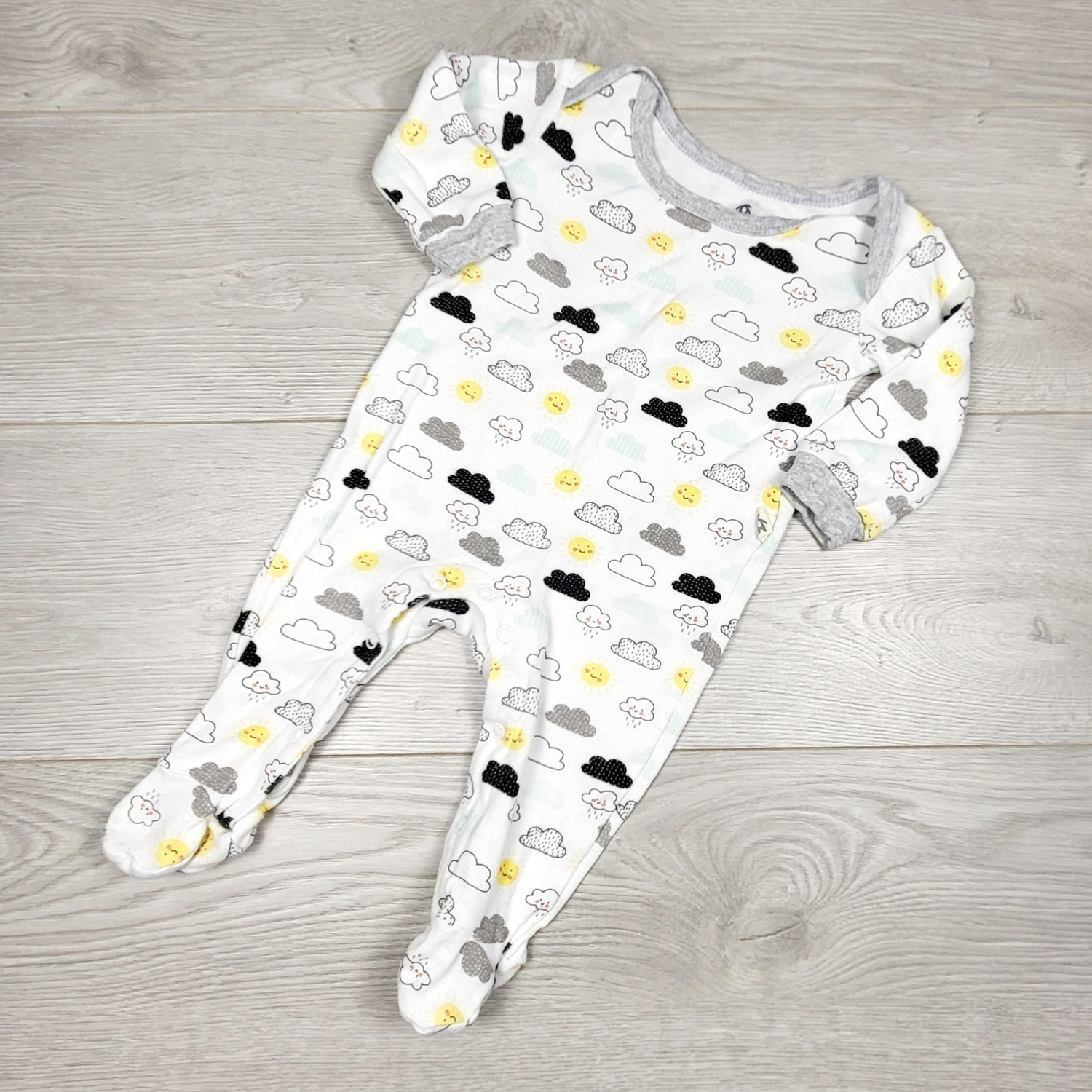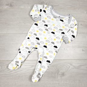KRML1 - Snugabye white cotton sleeper with clouds. Size 6-9 months