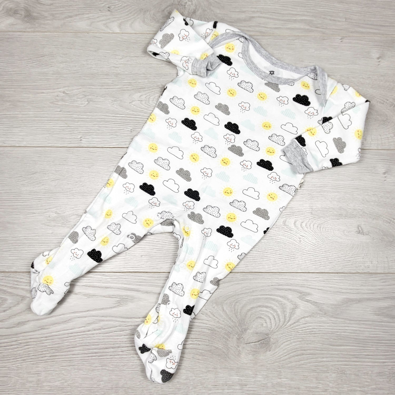 KRML1- Snugabye white cotton sleeper with clouds. Size 6-9 months