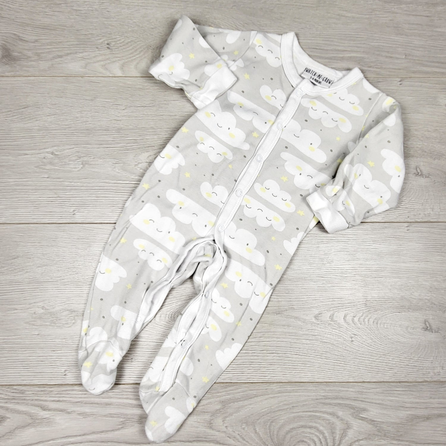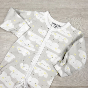 KRML1 - Watch Me Grown grey cotton sleeper with clouds. Size 3-6 months