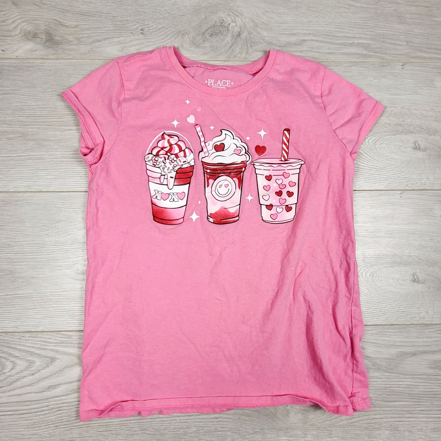 KTBL1 - Children's Place pink t-shirt with coffee drinks. Size 10/12