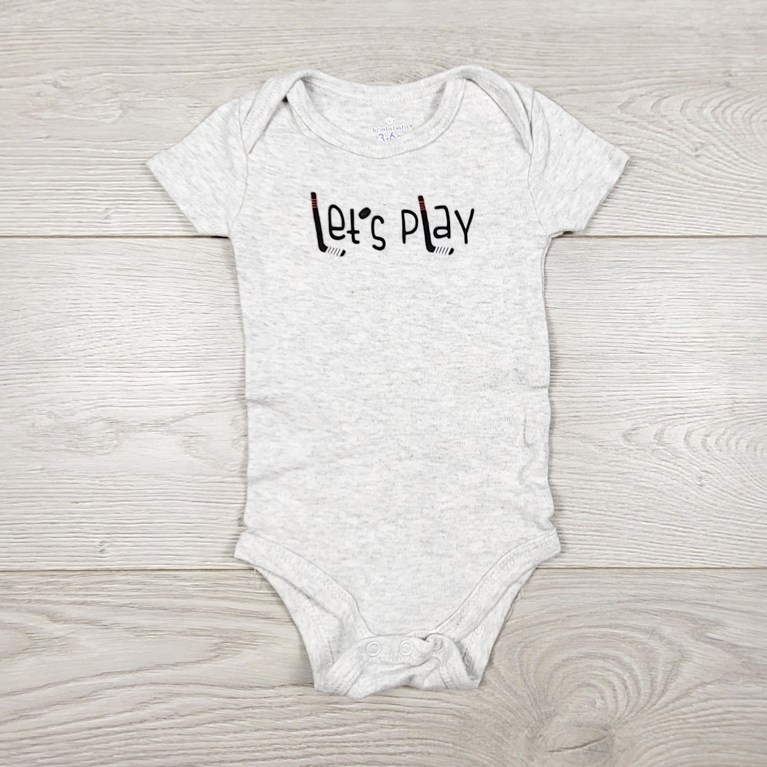 MASO2 - Koala Baby grey hockey themed "Let's Play" bodysuit. Size 3-6 months