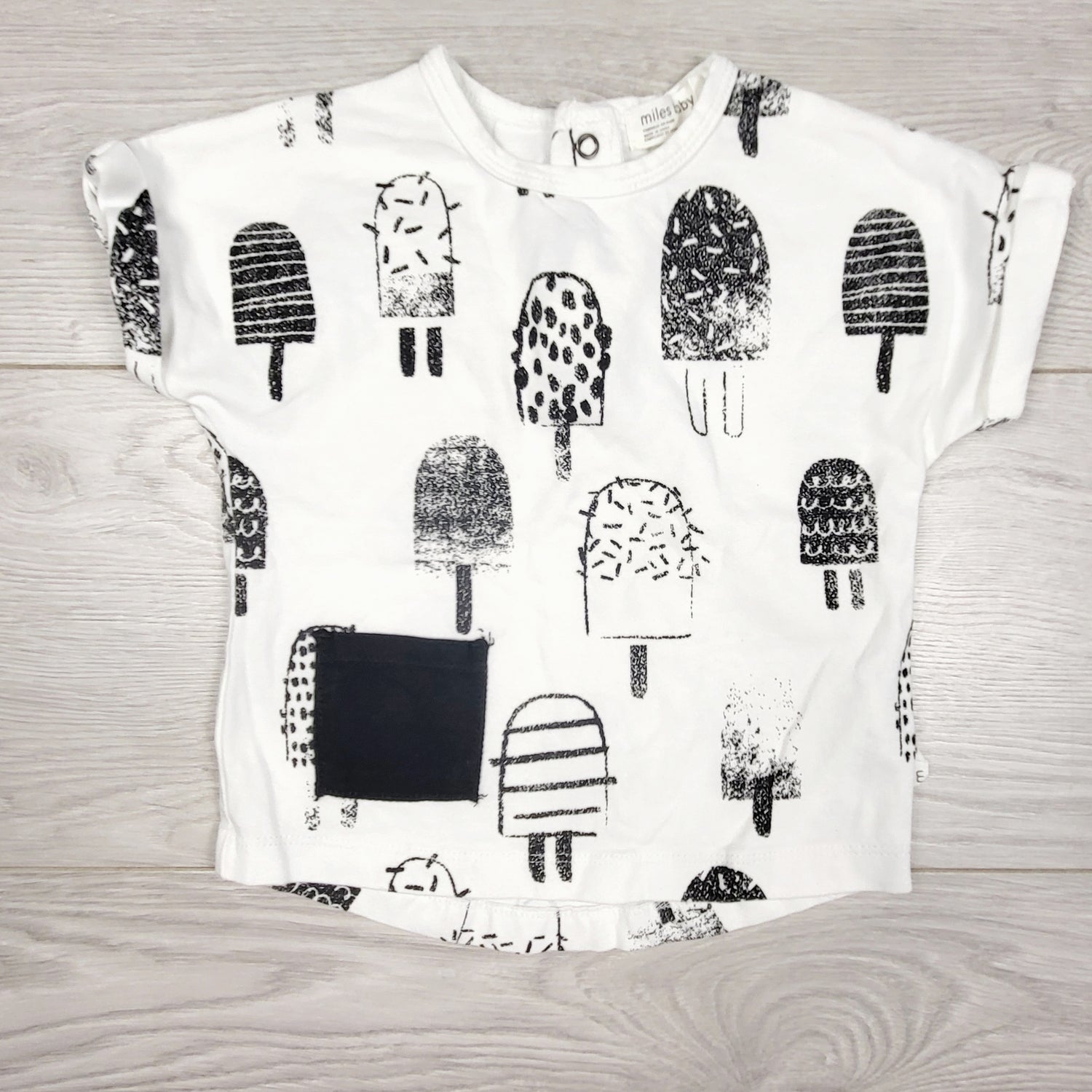 Miles Baby white and black popsicle t-shirt. Size 9 months