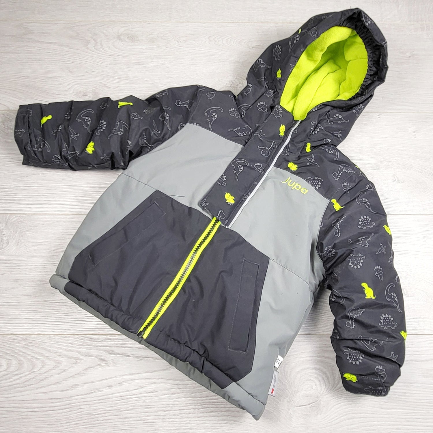 MRSH1 - Jupa black and grey fleece lined Winter coat with dinosaurs. Size 2T