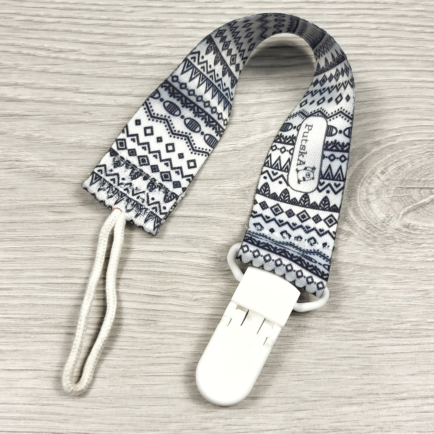Navy patterned pacifier clip