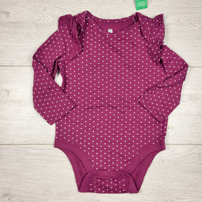 NEW - Gap plum coloured bodysuit with hearts. Size 12-18 months