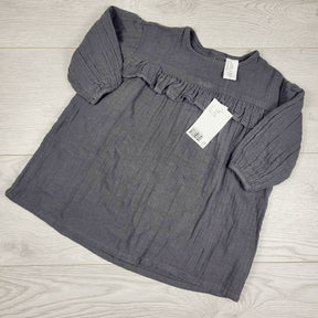 NEW - H and M dark grey muslin cotton dress. Size 6-9 months