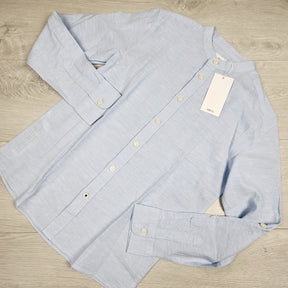 NEW - MNG (Mango) blue linen blend button down shirt. Size 10