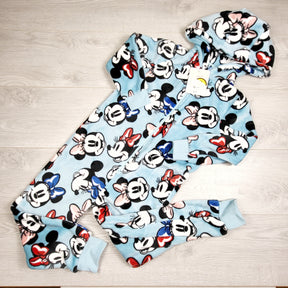 NEW - Tu x Disney blue plush Mickey and Minnie mouse hooded romper / sleeper. Size 5/6